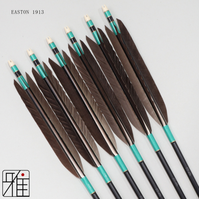 本来弓道用の矢は竹を加工して製作しておりました。いくつもの竹を切り、選別し矢を製作します。このため竹の矢は、非常に高価なものとなってきました。 そこで、近年の現代弓道では、ジュラルミンシャフトが普及するようになり、現代弓道の普及につながっております。 数あるシャフトサイズから、近的用としては、EASTON社の2015・1913の2つのシャフトサイズを選びました。
