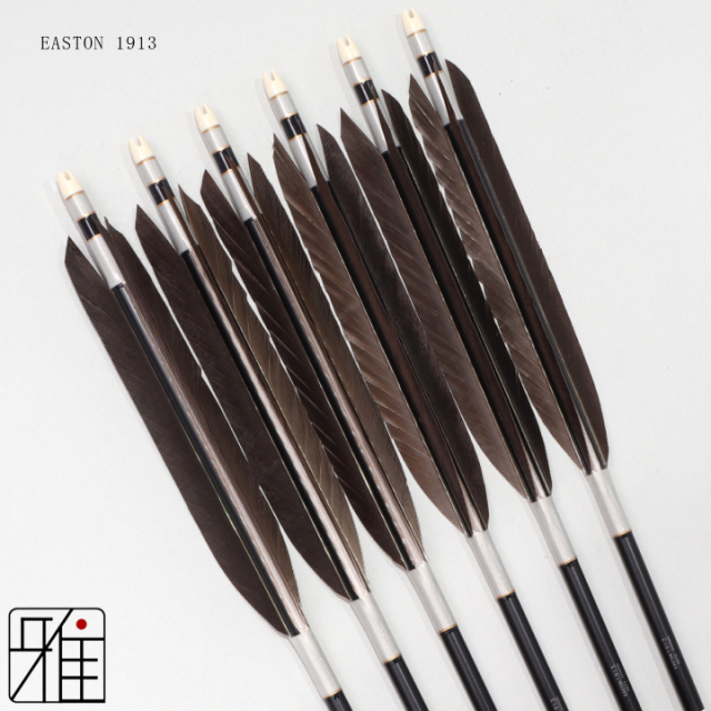 本来弓道用の矢は竹を加工して製作しておりました。いくつもの竹を切り、選別し矢を製作します。このため竹の矢は、非常に高価なものとなってきました。 そこで、近年の現代弓道では、ジュラルミンシャフトが普及するようになり、現代弓道の普及につながっております。 数あるシャフトサイズから、近的用としては、EASTON社の2015・1913の2つのシャフトサイズを選びました。