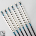 本来弓道用の矢は竹を加工して製作しておりました。いくつもの竹を切り、選別し矢を製作します。このため竹の矢は、非常に高価なものとなってきました。 そこで、近年の現代弓道では、ジュラルミンシャフトが普及するようになり、現代弓道の普及につながっております。 数あるシャフトサイズから、近的用としては、EASTON社の2015・1913の2つのシャフトサイズを選びました。