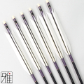 本来弓道用の矢は竹を加工して製作しておりました。いくつもの竹を切り、選別し矢を製作します。このため竹の矢は、非常に高価なものとなってきました。 そこで、近年の現代弓道では、ジュラルミンシャフトが普及するようになり、現代弓道の普及につながっております。 数あるシャフトサイズから、近的用としては、EASTON社の2015・1913の2つのシャフトサイズを選びました。