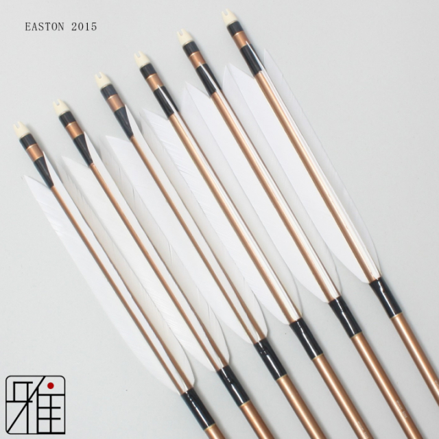 本来弓道用の矢は竹を加工して製作しておりました。いくつもの竹を切り、選別し矢を製作します。このため竹の矢は、非常に高価なものとなってきました。 そこで、近年の現代弓道では、ジュラルミンシャフトが普及するようになり、現代弓道の普及につながっております。 数あるシャフトサイズから、近的用としては、EASTON社の2015・1913の2つのシャフトサイズを選びました。
