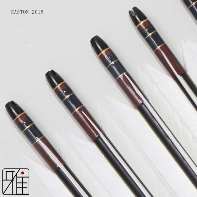 本来弓道用の矢は竹を加工して製作しておりました。いくつもの竹を切り、選別し矢を製作します。このため竹の矢は、非常に高価なものとなってきました。 そこで、近年の現代弓道では、ジュラルミンシャフトが普及するようになり、現代弓道の普及につながっております。 数あるシャフトサイズから、近的用としては、EASTON社の2015・1913の2つのシャフトサイズを選びました。