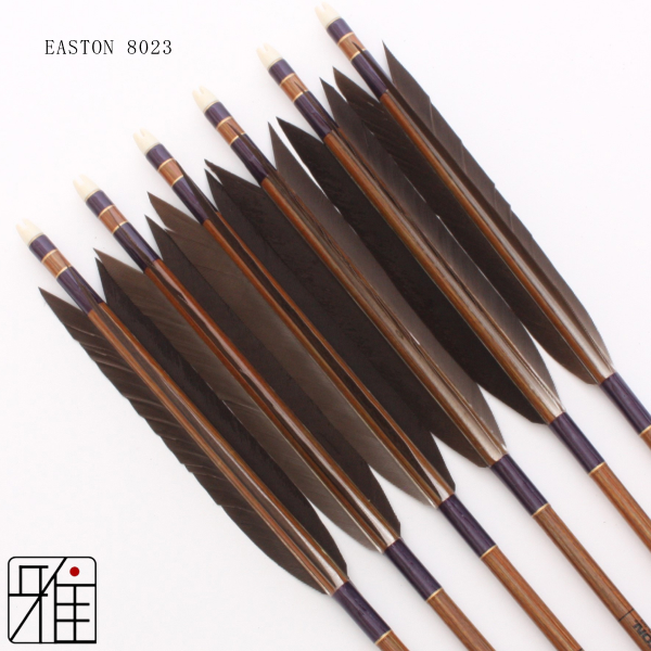 本来弓道用の矢は竹を加工して製作しておりました。いくつもの竹を切り、選別し矢を製作します。このため竹の矢は、非常に高価なものとなってきました。 そこで、近年の現代弓道では、ウッドカーボンによりその弓道の持つ文化的な一面を再現し、金属矢としてより竹矢に近い色を再現しております。 数あるカーボンシャフトサイズから、近的用としては、EASTON社の8023・7620の2つのシャフトサイズを選びました。