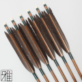 本来弓道用の矢は竹を加工して製作しておりました。いくつもの竹を切り、選別し矢を製作します。このため竹の矢は、非常に高価なものとなってきました。 そこで、近年の現代弓道では、ウッドカーボンによりその弓道の持つ文化的な一面を再現し、金属矢としてより竹矢に近い色を再現しております。 数あるカーボンシャフトサイズから、近的用としては、EASTON社の8023・7620の2つのシャフトサイズを選びました。
