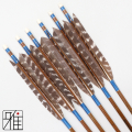 本来弓道用の矢は竹を加工して製作しておりました。いくつもの竹を切り、選別し矢を製作します。このため竹の矢は、非常に高価なものとなってきました。 そこで、近年の現代弓道では、ウッドカーボンによりその弓道の持つ文化的な一面を再現し、金属矢としてより竹矢に近い色を再現しております。 数あるカーボンシャフトサイズから、近的用としては、EASTON社の8023・7620の2つのシャフトサイズを選びました。