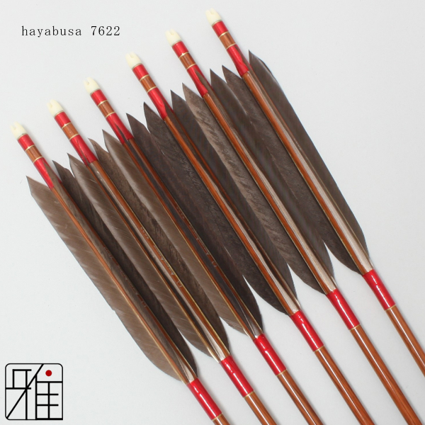 本来弓道用の矢は竹を加工して製作しておりました。いくつもの竹を切り、選別し矢を製作します。このため竹の矢は、非常に高価なものとなってきました。 そこで、近年の現代弓道では、hayabusaカーボンによりその弓道の持つ文化的な一面を再現し、金属矢としてより竹矢に近い色を再現しております。数あるカーボンシャフトサイズから、近的用カーボンシャフトとして、hayabusa Cabon8025・7622を提案致します。