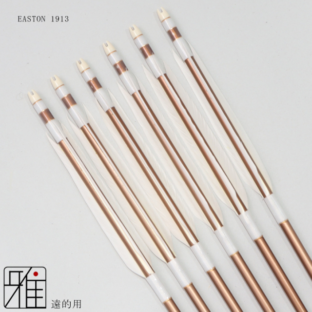 本来弓道用の矢は竹を加工して製作しておりました。いくつもの竹を切り、選別し矢を製作します。このため竹の矢は、非常に高価なものとなってきました。 そこで、近年の現代弓道では、ジュラルミンシャフトが普及するようになり、現代弓道の普及につながっております。 数あるシャフトサイズから、遠的用としては、EASTON社のSL2013・1913・SL1912の3つのシャフトサイズを選びました。