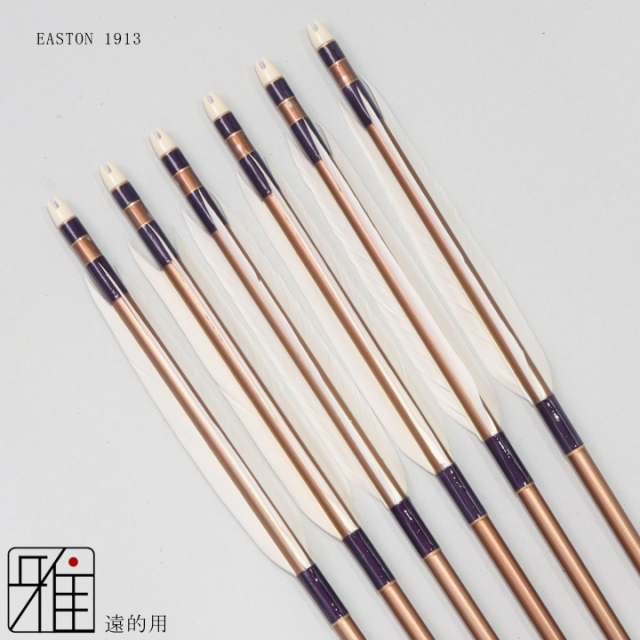 弓道 ジュラ矢 遠的矢 ホワイトグース 1913茶|6本組|矧糸:紫系|197110
