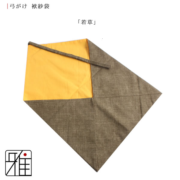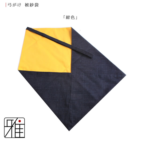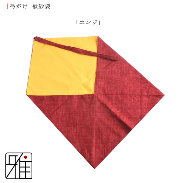 | 弓かけ用に製作されている袱紗袋になります。 袋の形状に縫い合わせることにより、使用する際に便利お使いいただける形状となっております。 弓かけ本体は、十分に乾燥させたあと手ぬぐいで包み、袱紗袋に入れると良いとされております。 |