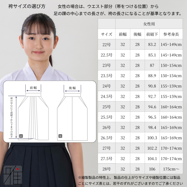 TOP 上衣・袴・帯|Kyudogi Hakama Obi 上衣・袴・帯|Kyudogi Hakama Obi 弓道衣セット 女性用 ランクアップ弓道衣 6点セット 『通年用』 (上衣・袴・角帯・足袋・胸当・風呂敷)WEB限定 価格: ¥24,200 (税込) 販売期間: 型番: 590925 上衣サイズ: 選択してください SS S M L LL 袴サイズ: 選択してください 22号(145~149cm) 22.5号(145~149cm) 23号(150~154cm) 23.5号(150~154cm) 24号(155~159cm) 24.5号(155~159cm) 25号(160~164cm) 25.5号(160~164cm) 26号(165~169cm) 26.5号(165~169cm) 帯色: 選択してください 黒色 濃紺 白色 グレー さくら むらさき 茶色 足袋サイズ: 選択してください 22.0cm 22.5cm 23.0cm 23.5cm 24.0cm 24.5cm 25.0cm 25.5cm 26.0cm 26.5cm 27.0cm 27.5cm 28.0cm 胸当て: 選択してください 合皮レザー黒色Sサイズ 合皮レザー黒色Mサイズ 合皮レザー白色Sサイズ 合皮レザー白色Mサイズ メッシュ白色Sサイズ+(¥220) メッシュ白色Mサイズ+(¥220) メッシュ黒色Sサイズ+(¥220) メッシュ黒色Mサイズ+(¥220) 大風呂敷: 選択してください 紺色 無地 数量: セット 在庫: 9セット 在庫 9セット 上衣サイズ袴サイズSS22号(145~149cm)22.5号(145~149cm)23号(150~154cm)23.5号(150~154cm)24号(155~159cm)24.5号(155~159cm)25号(160~164cm)25.5号(160~164cm)26号(165~169cm)26.5号(165~169cm)S22号(145~149cm)22.5号(145~149cm)23号(150~154cm)23.5号(150~154cm)24号(155~159cm)24.5号(155~159cm)25号(160~164cm)25.5号(160~164cm)26号(165~169cm)26.5号(165~169cm)M22号(145~149cm)22.5号(145~149cm)23号(150~154cm)23.5号(150~154cm)24号(155~159cm)24.5号(155~159cm)25号(160~164cm)25.5号(160~164cm)26号(165~169cm)26.5号(165~169cm)L22号(145~149cm)22.5号(145~149cm)23号(150~154cm)23.5号(150~154cm)24号(155~159cm)24.5号(155~159cm)25号(160~164cm)25.5号(160~164cm)26号(165~169cm)26.5号(165~169cm)LL22号(145~149cm)22.5号(145~149cm)23号(150~154cm)23.5号(150~154cm)24号(155~159cm)24.5号(155~159cm)25号(160~164cm)25.5号(160~164cm)26号(165~169cm)26.5号(165~169cm) 返品・交換についての詳細はこちら レビューはありません 商品仕様 製品名: ランクアップ弓道衣6点セット 女性用(上衣・袴・角帯・足袋・胸当・風呂敷)WEB限定 型番: 590925 |ランクアップセット内訳 ワンランク上を目指す弓道家へのセット商品です。 経験者・練達者の方へ弓道衣の買い替えの際にお得なセットとなります。 ■オールシーズン上衣(ポリエステル65%・綿35%) ■通年用 ブロード織 馬乗黒袴(ポリエステル80%レーヨン20%/後ろ一本ヒダ) ■博多角帯献上柄(綿100%) ■楽屋特選足袋足袋4枚コハゼ(表地:ポリエステル65%・綿35%/裏地・底地:綿100%) ■風呂敷(綿100%) ■胸あて(綿紐タイプ) |上衣:SS~LLサイズ 初めて、弓道用上衣を選ぶ際は、実際にご自身がいつも着ている洋服のサイズを参考に されると良いと思います。 男性は、洋服のサイズと同等を選ばれと良いと思います。 弓道衣は一般的な洋服のサイズより大きな作りになっていますので、身体にフィットするサイズの上衣を選びましょう。 ※縫製製品の特性上、 製品の仕上がりサイズや縫製位置には製品ごとにサイズ表とは若干のずれがございます。 予めご了承ください。 |馬乗袴:22号~26.5号 弓道の試合・練習用として着用されます。 弓道袴は黒色または紺色で、男性は馬乗袴、女性は腰板のないもので馬乗袴が好ましいと言われています。 | 博多角帯 献上柄:全7色 武道弓道の場合は、女性の方でも男性用の角帯を使用いたします。筋の通った縞と、独鈷柄。 博多織ならではのしゃきっとした締めごこちと空気感は、袴姿をビシっと引き締めてくれます。 裏は、もちろん、一本独鈷。無地がお好みの方は、裏側で絞めていただいてももちろん大丈夫です。 ベーシックなのに、かっこよく決まる献上帯なら、それだけで上質感があります。※通常3回程度巻いて使用致しますが、帯本体が長すぎる場合には、端を切ってお客様にて調整をお願い致します。 |足袋:22.0~28.0cm 素材として東洋紡エステルを表生地に使用することで、摩耗につよく、丈夫で縮みにくいシワになりにくい仕上がりの足袋です。 表生地には、テトロンを使い、裏・底は綿100%のブロード足袋です。白度があり、丈夫な標準型の足袋です。 ※優美足袋(足袋カバー)との相性も良いので重ねて履かれることをおすすめします。 |胸あて:綿紐タイプ 弓道で使用される道具になります。離れの際に弦が胸を擦る事を防止する役割があります。 【胸あての紐について】 ゴム製の紐が一般的には使われておりますが、装着した際に身体へフィット感が弱く、締まりが悪いため、使用される方によっては、弓道の動作の上で弦が胸あてに引っかかるなど安全性が確保できないため当店では、綿紐を採用しており身体にフィット感がでるように変更しております。 ※セット商品のため、単品での返品は受け付けておりません。 ※サイズ交換は、未使用品に限り受け付けております。 ※上衣・足袋につきましては、一度ご使用になられた場合返品・交換不可となります。 ※袴につきましては、サイズ表記の『紙テープ』 や『しつけ糸』を外されますと、 新品・未使用の場合であっても、 返品・交換の対象外となってしまいます。 サイズをご確認の際には、必ず紙テープ・しつけ糸