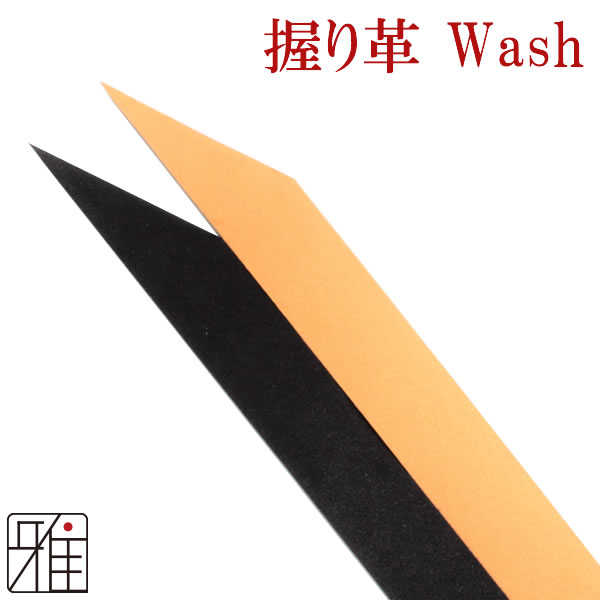 1.印伝の黒とんぼの握り革とWash握り革/茶色を、吊革の長さに切り、ボンドG17もしくはボンドGクリヤーで接着する。